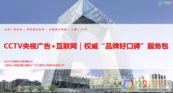 广州口碑动力网络科技有限公司,由广告传媒行业从业20年老兵组成,我们专注品牌背书类营销传播资源的整合应用,公司拥有CCTV央视广告、全国卫视地方台、纽约纳斯达克大屏、全国高铁站刷屏、二三线城市电梯海报、互联网口碑营销等广告传播资源9 9 x i n x i n e t。